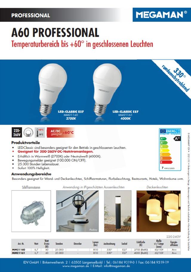 Hochtemperatur LED-Lampen A60/60°C